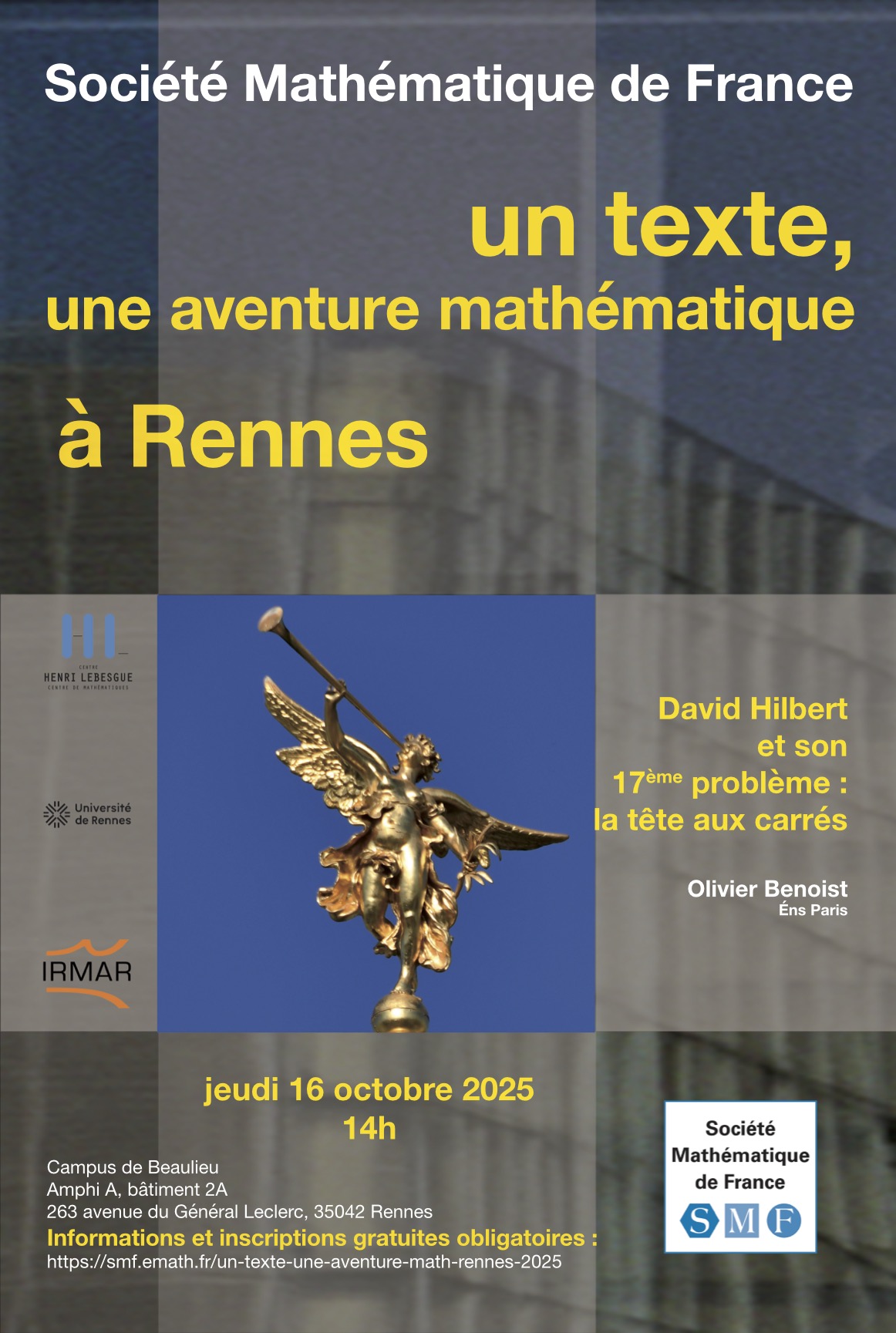 Inscription possible pour l'ensemble du cycle ou pour chaque conférence sur le site de la SMF.